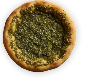 Soft baked flatbread topped with dried oregano, thyme, sumac, sesame seeds, and olive oil.