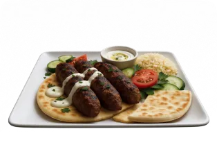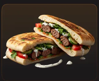 Grilled Ground beef, onion, parsley, sumac, pickled turnip with tahini sauce on pita